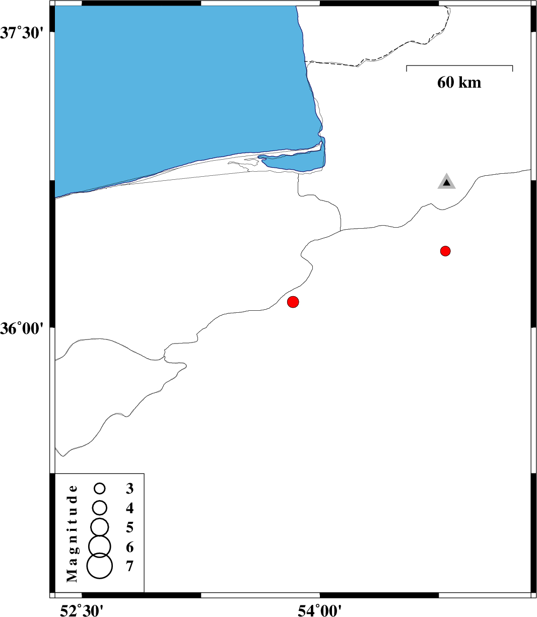 | 2014/04/25 | 16:26:56.3 | 20:56:56.3 | 36.39 | 54.79 | 14 | ML2.8 | Semnan Province, 16 km West of Shahrud |