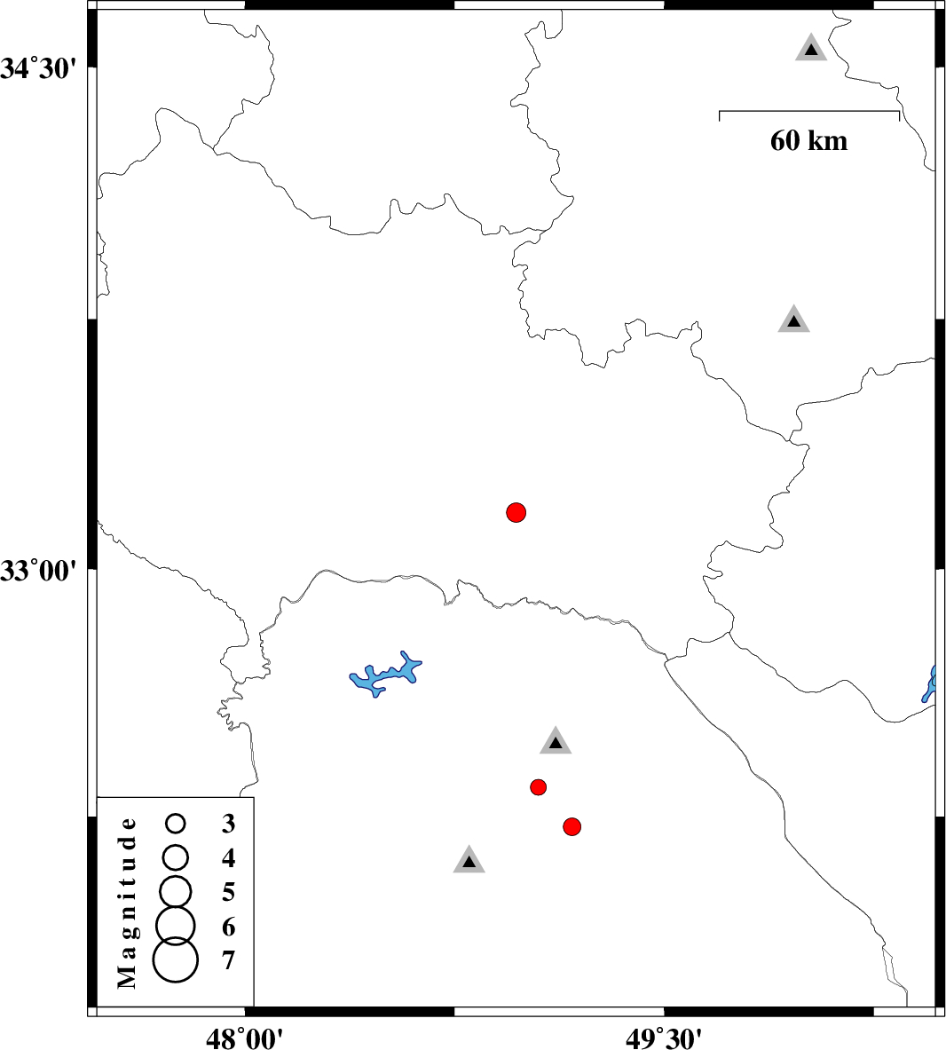 | 2014/04/27 | 00:55:41.3 | 05:25:41.3 | 32.22 | 49.17 | 14 | ML2.8 | Khoozestan Province, 20 km South of Lali | ||