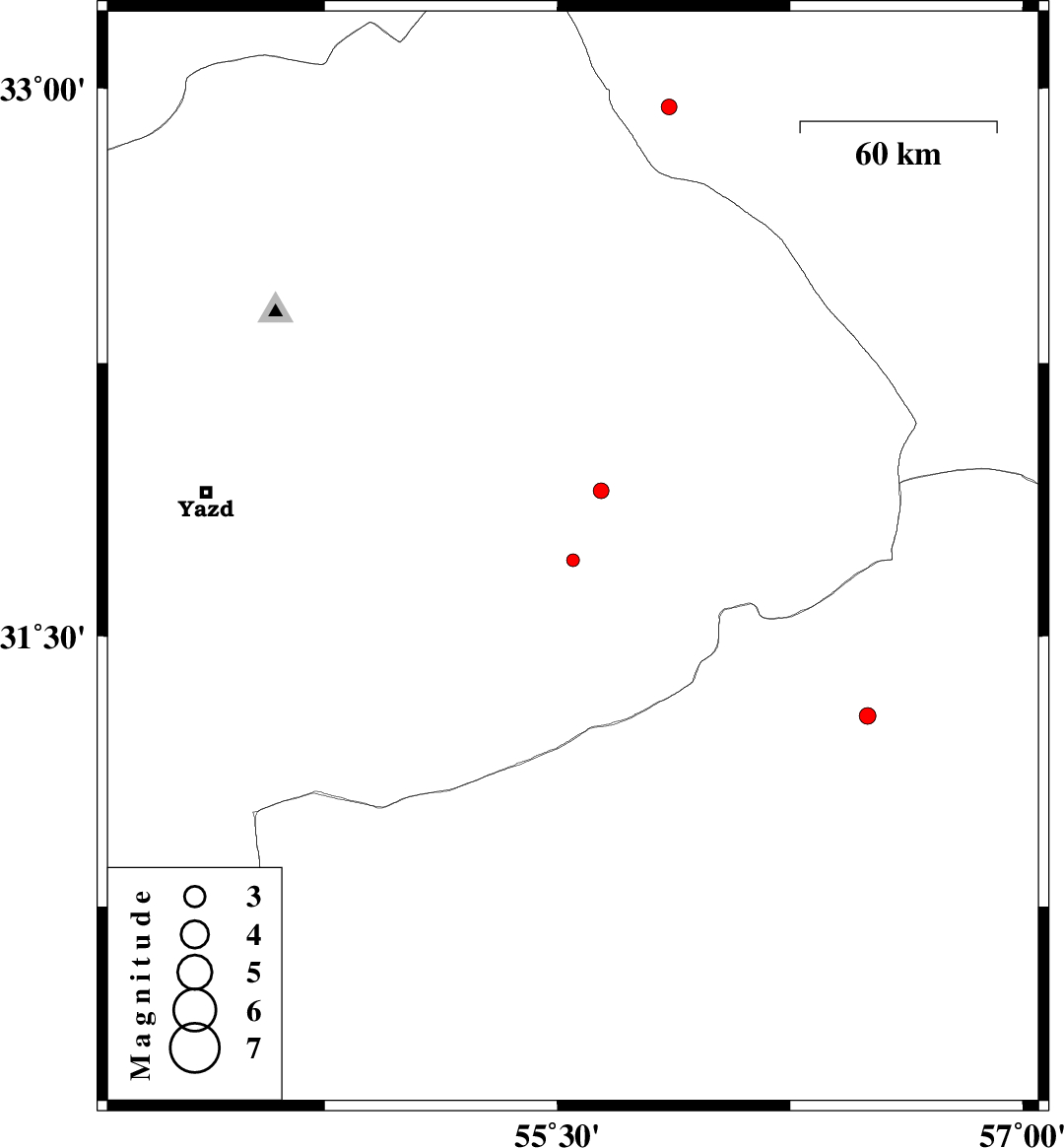 | 2014/04/28 | 11:56:21.1 | 16:26:21.1 | 31.9 | 55.64 | 36 | ML2.2 | Yazd Province, 41 km North-East of Bafq |