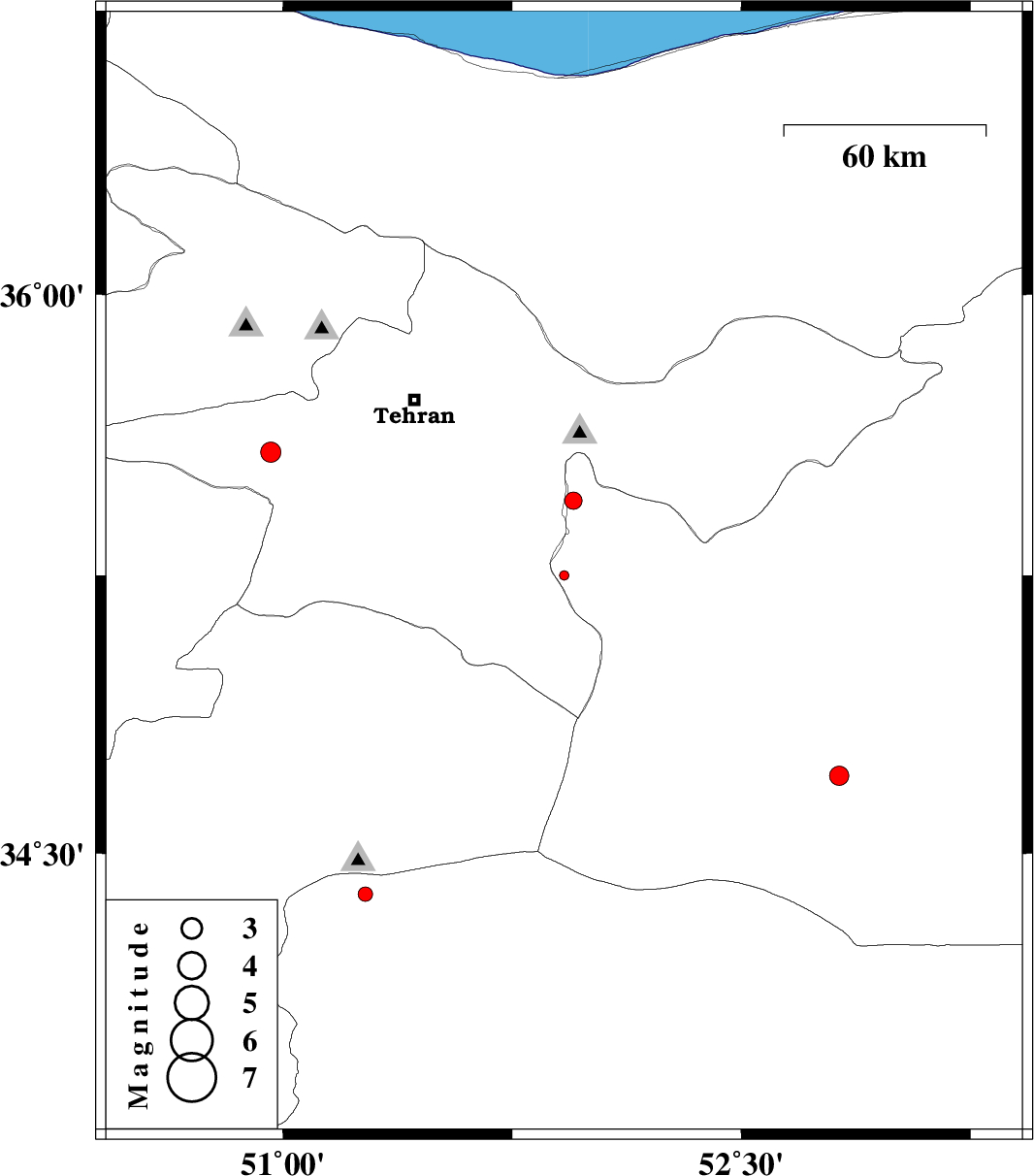 | 2014/05/07 | 19:56:15.6 | 00:26:15.6 | 34.71 | 52.82 | 14 | ML2.8 | Semnan Province, 72 km South-East of Garmsar | ||