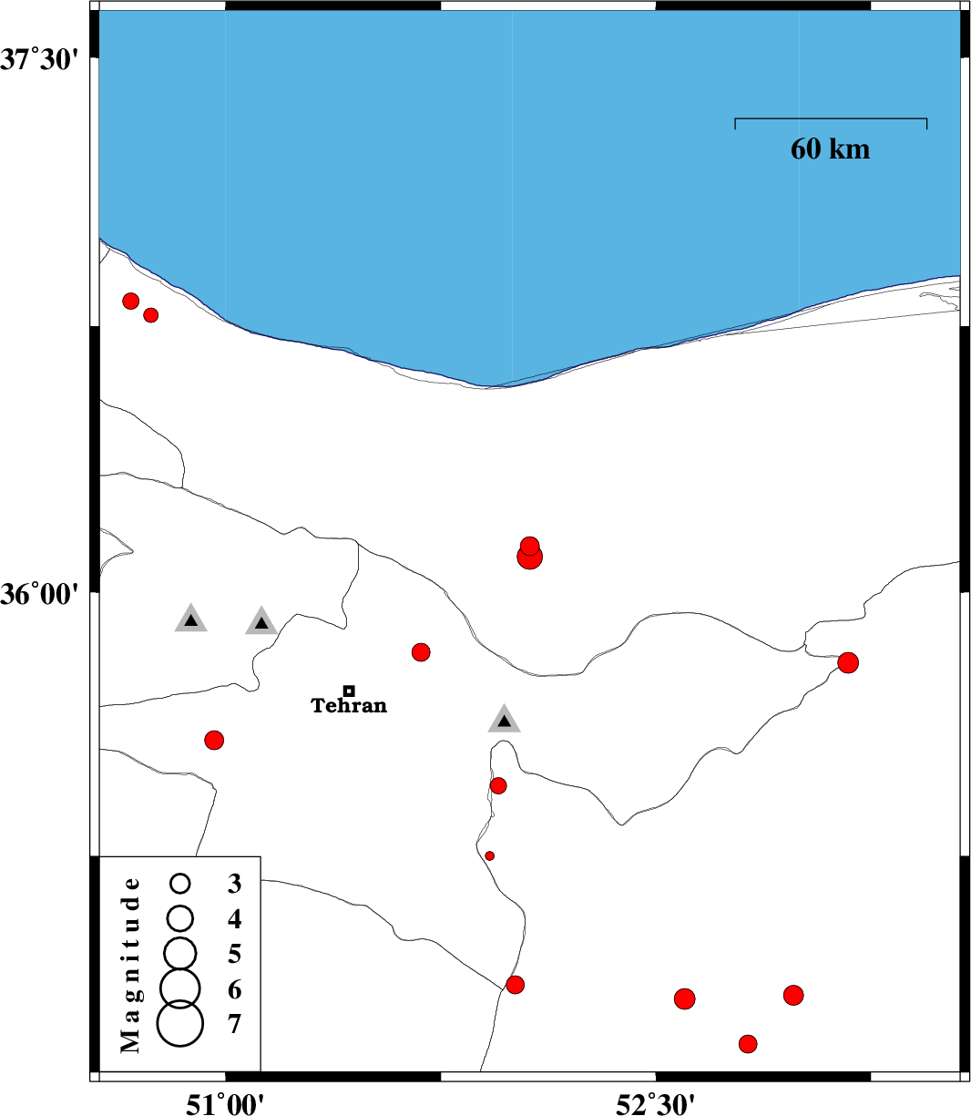 | 2014/05/10 | 23:16:11.1 | 03:46:11.1 | 36.13 | 52.06 | 14 | ML3 | Mazandaran Province, 47 km North of Damavand | ||
