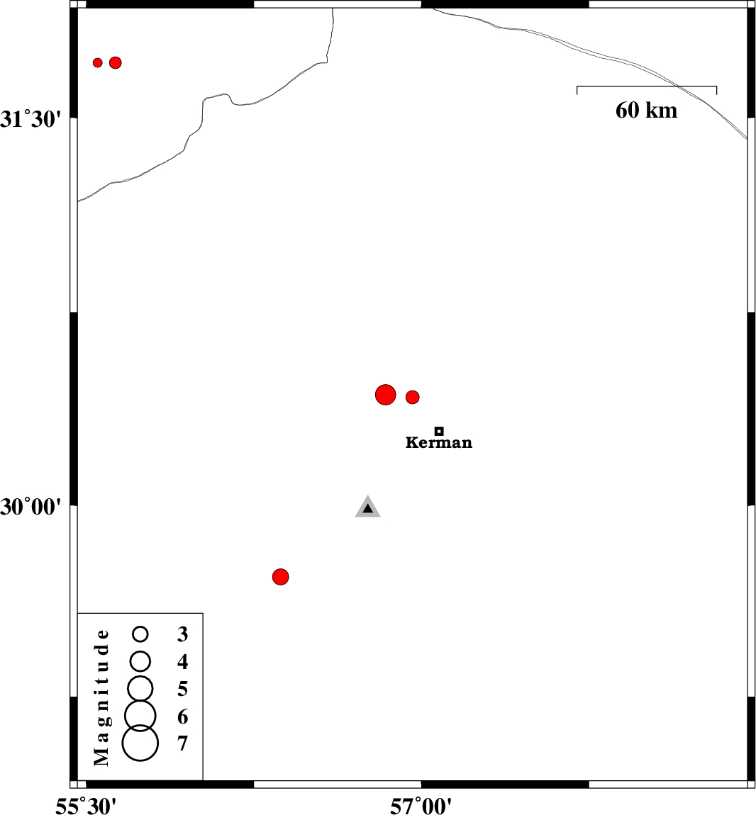 | 2014/05/12 | 06:45:40.5 | 11:15:40.5 | 30.43 | 56.84 | 15 | ML4.1 | Kerman Province, 28 km North-West of Kerman | ||
