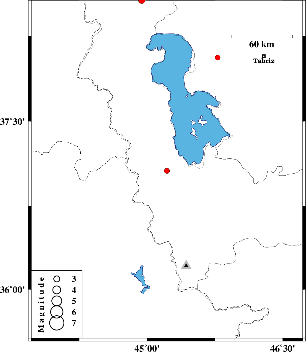 | 2014/05/12 | 18:58:59.5 | 23:28:59.5 | 38.06 | 45.78 | 37 | ML2.6 | Azarbaijan Sharghi Province, 15 km South of Shabestar | ||