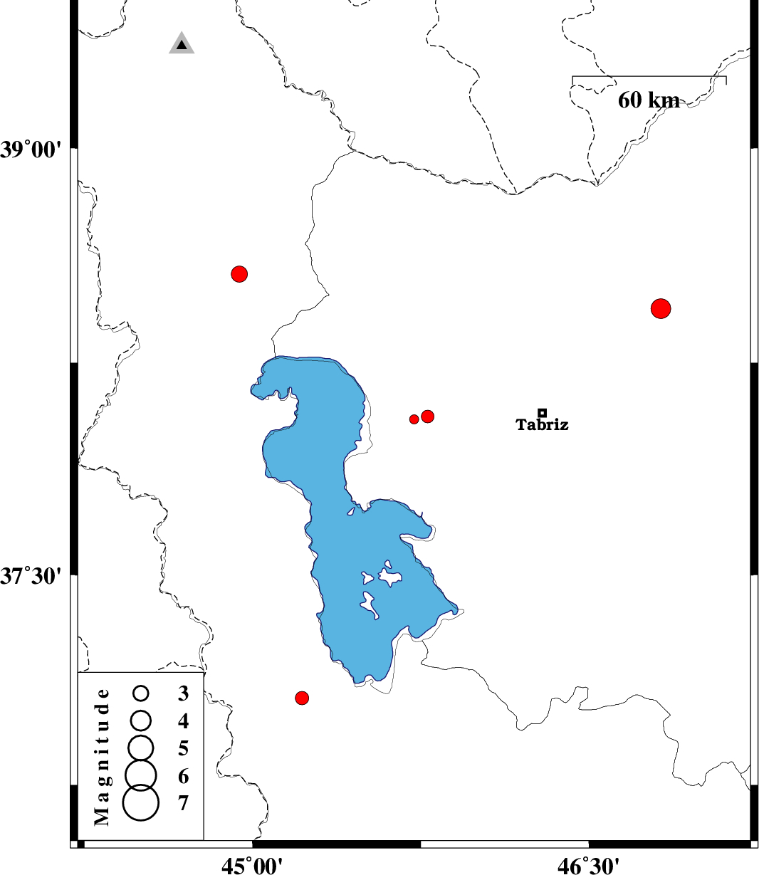 2014/05/08 | 08:30:15.1 | 13:00:15.1 | 38.44 | 46.82 | 14 | ML3.9 | Azarbaijan Sharghi Province, 23 km West of Ahar | ||