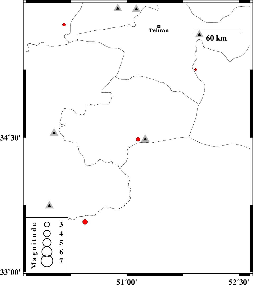 | 2014/05/09 | 23:39:02.6 | 04:09:02.6 | 35.25 | 51.92 | 14 | ML1.4 | Semnan Province, 24 km East of Varamin | ||