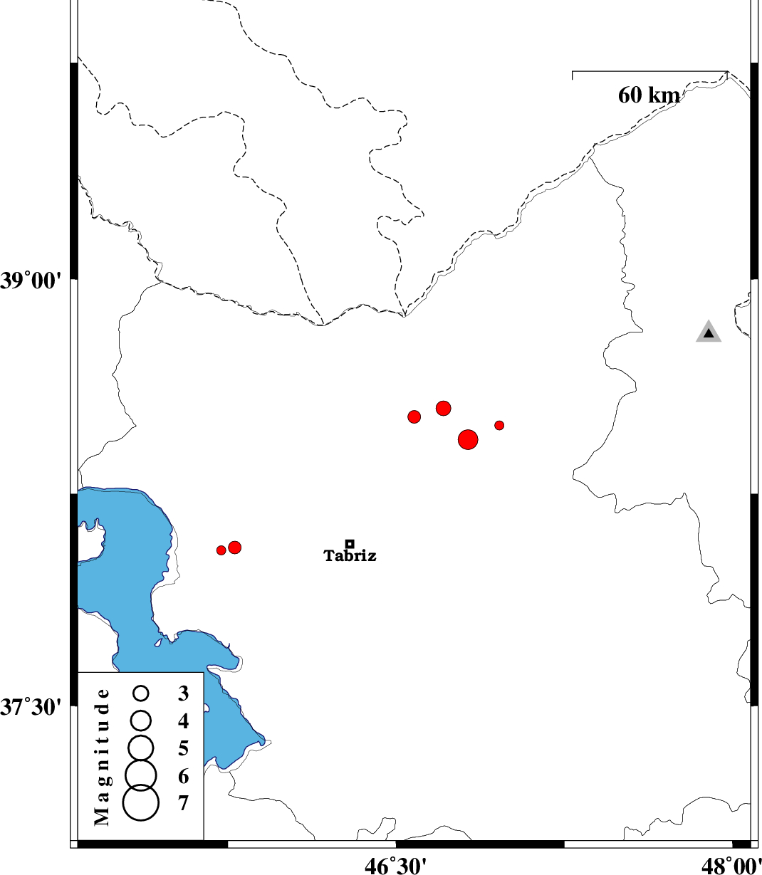 | 2014/04/25 | 02:02:40.4 | 06:32:40.4 | 38.55 | 46.71 | 18 | ML2.9 | Azarbaijan Sharghi Province, 33 km West of Ahar |