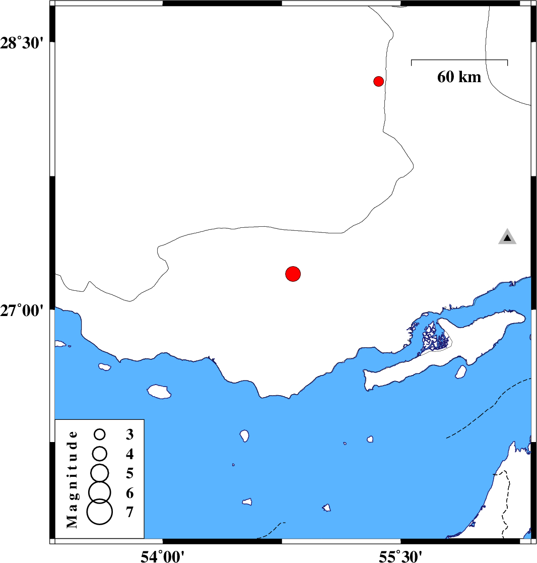 | 2014/05/09 | 20:54:44.8 | 01:24:44.8 | 28.28 | 55.36 | 18 | ML2.8 | Fars Province, 53 km West of Hajiabad |