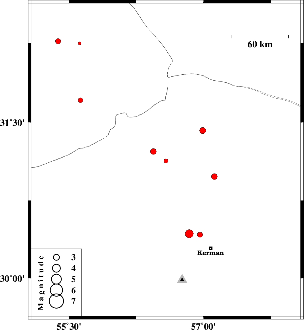 | 2014/05/14 | 17:52:37.9 | 22:22:37.9 | 31.22 | 56.44 | 14 | ML3 | Kerman Province, 36 km West of Ravar | ||
