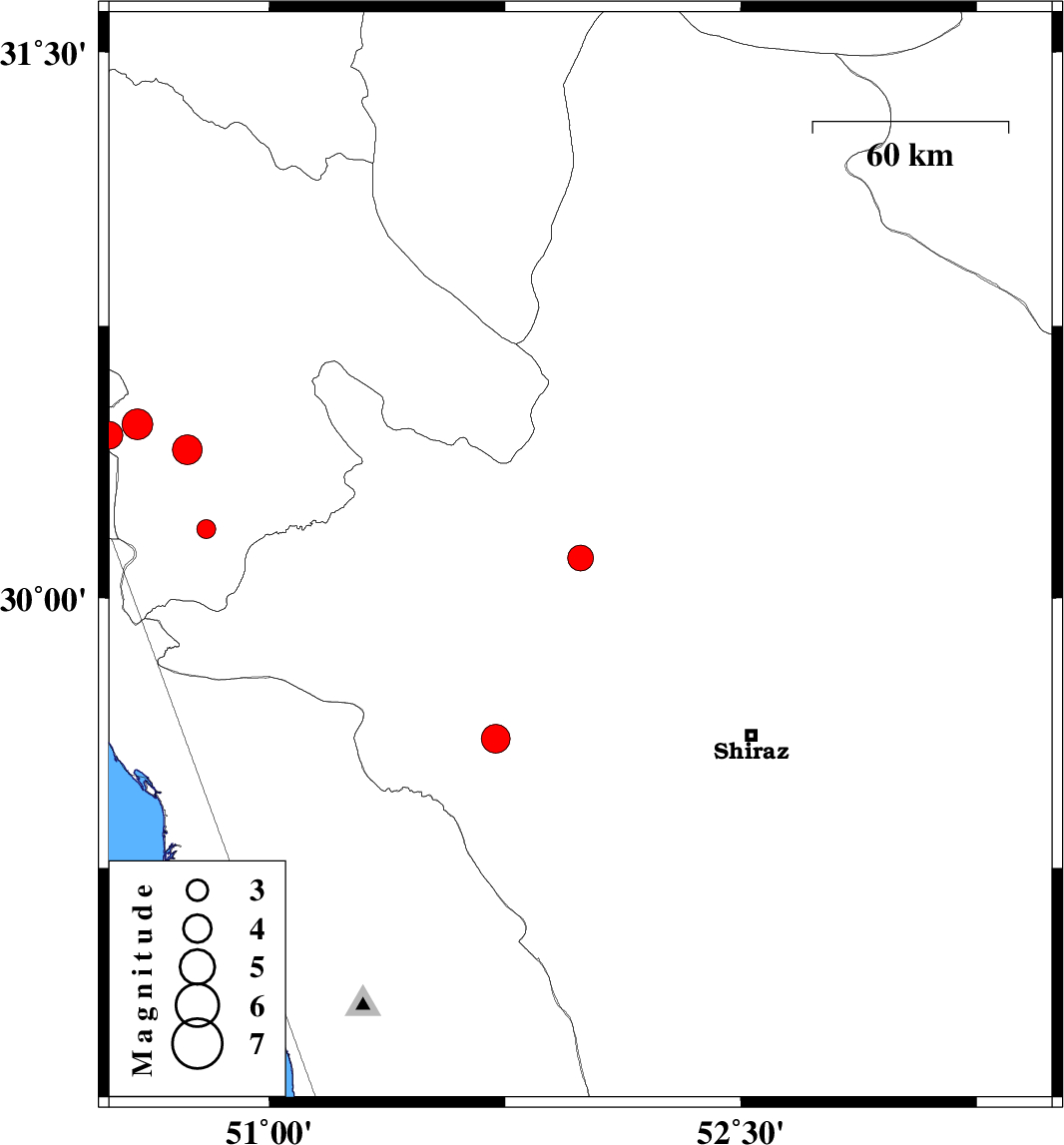 | 2014/05/03 | 20:10:27.7 | 00:40:27.7 | 29.61 | 51.72 | 15 | ML4.1 | Fars Province, 6 km Kazerun | ||