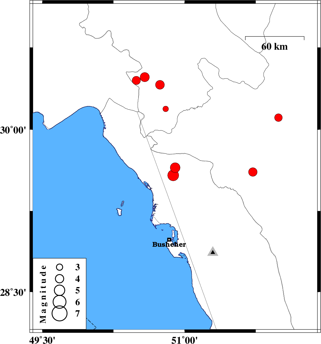 | 2014/05/21 | 09:46:29.1 | 14:16:29.1 | 29.58 | 50.88 | 18 | ML5.2 | Bushehr Province, 35 km East of Bandar-e genaveh | ||