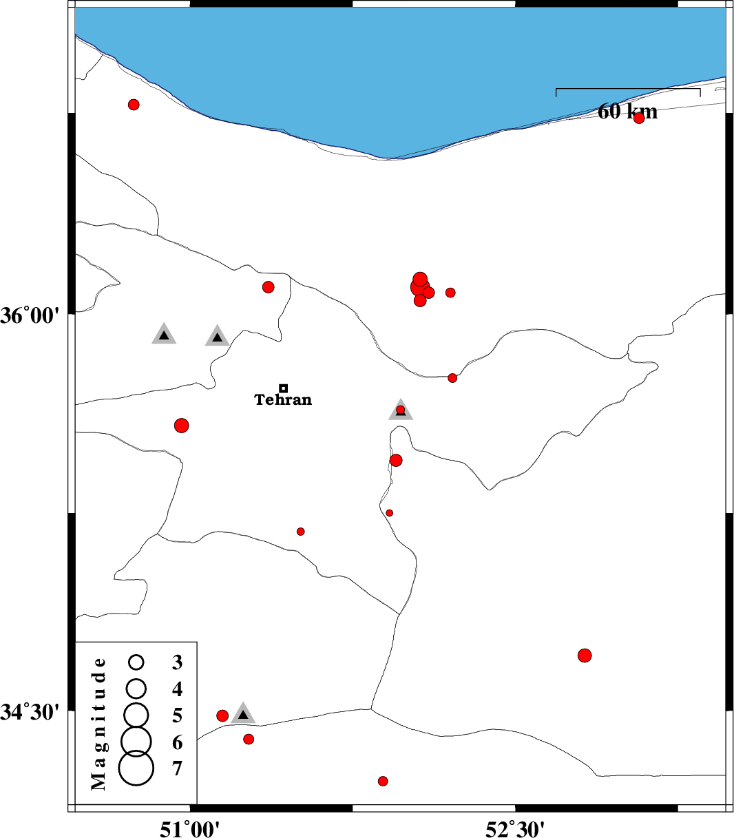 2014/05/07 | 19:56:15.6 | 00:26:15.6 | 34.71 | 52.82 | 14 | ML2.8 | Semnan Province, 72 km South-East of Garmsar | ||
