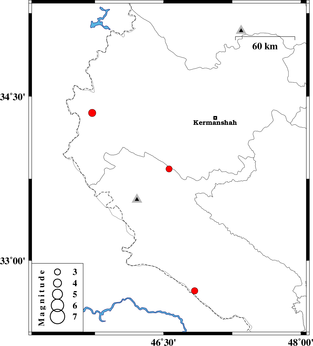 | 2014/06/03 | 05:30:32.8 | 10:00:32.8 | 32.72 | 46.84 | 14 | ML3.2 | Ilam Province, 39 km West of Dehloran |