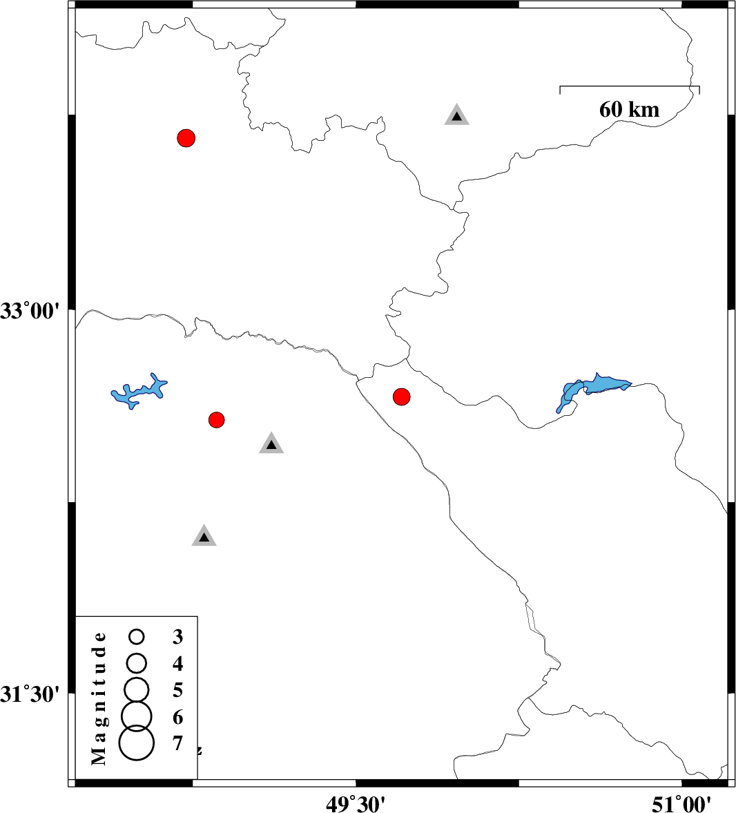 | 2014/06/08 | 01:14:42.8 | 05:44:42.8 | 33.66 | 48.72 | 18 | ML3.6 | Lorestan Province, 27 km South of Borujerd |