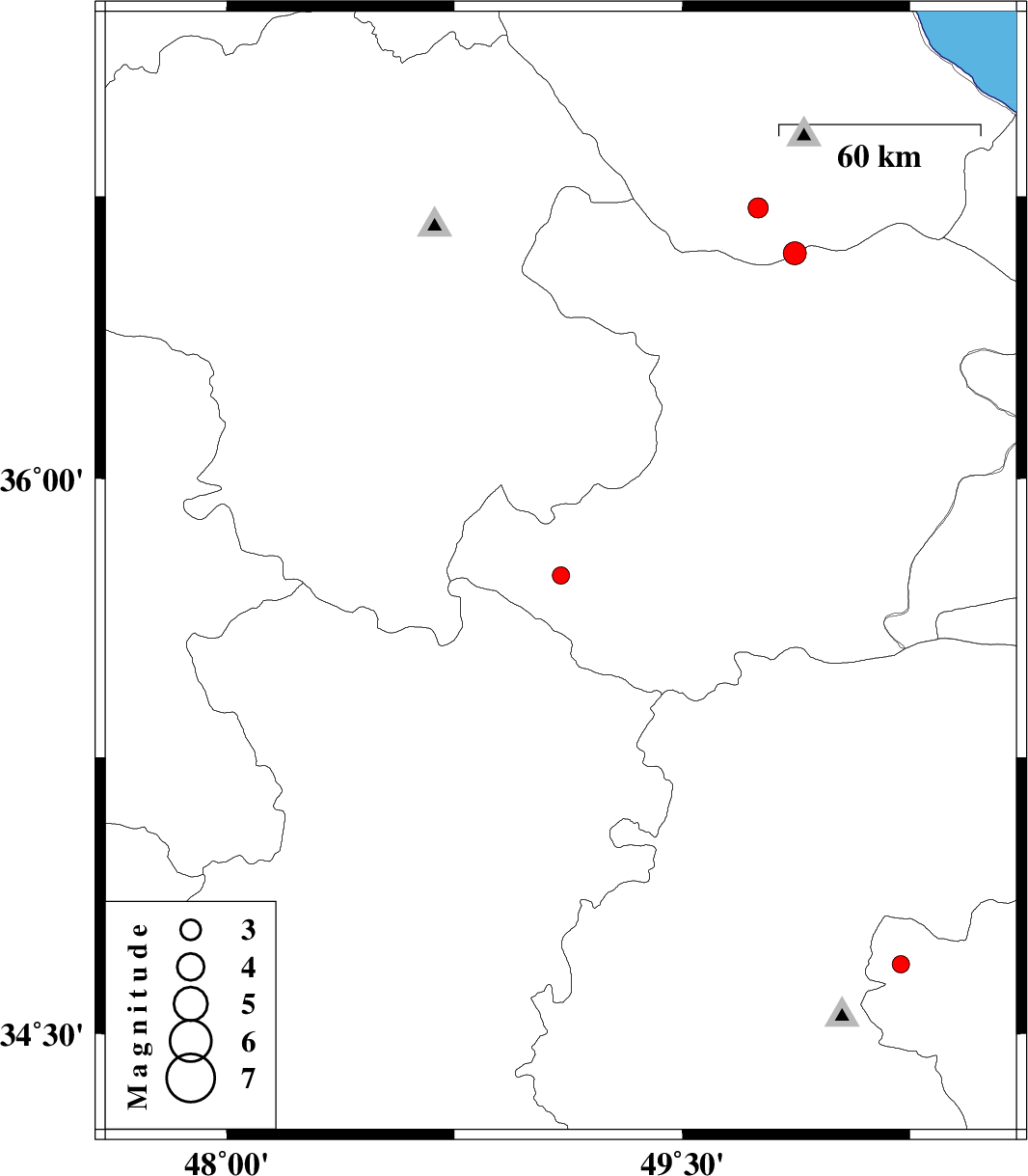 | 2014/06/01 | 17:34:09.6 | 22:04:09.6 | 36.6 | 49.87 | 6 | ML3.4 | Gilan Province, 39 km North-West of Qazvin |