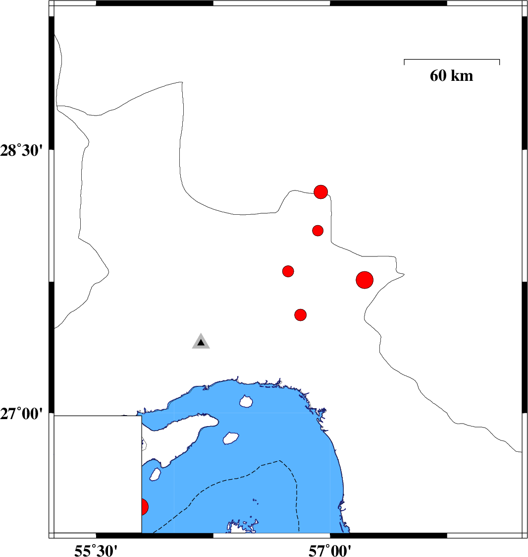 | 2014/05/27 | 05:44:29.2 | 10:14:29.2 | 26.46 | 55.78 | 15 | Mb4.9 | Persian Gulf, 73 km South-West of Qeshm |