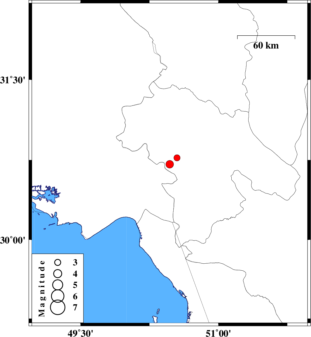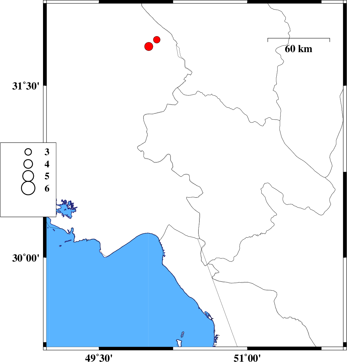 | 2014/06/15 | 23:24:46.9 | 03:54:46.9 | 30.71 | 50.47 | 18 | ML3.8 | Kohkiluieh va boyerahmad Province, 12 km Dehdasht |