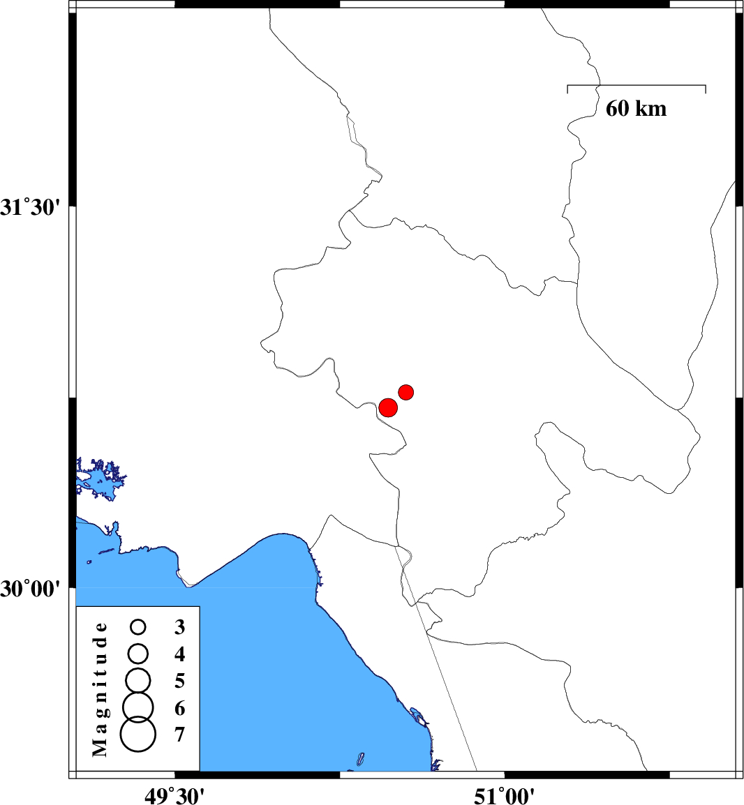 | 2014/06/15 | 23:24:46.9 | 03:54:46.9 | 30.71 | 50.47 | 18 | ML3.8 | Kohkiluieh va boyerahmad Province, 12 km Dehdasht |