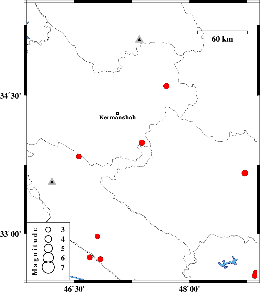 2014/06/03 | 05:30:32.8 | 10:00:32.8 | 32.72 | 46.84 | 14 | ML3.2 | Ilam Province, 39 km West of Dehloran |