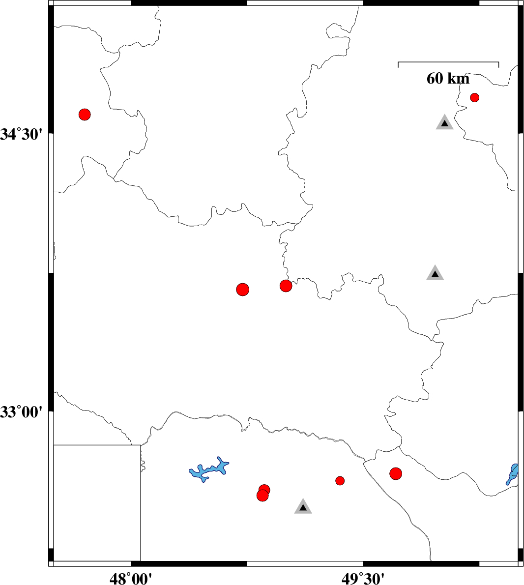 | 2014/06/08 | 01:14:42.8 | 05:44:42.8 | 33.66 | 48.72 | 18 | ML3.6 | Lorestan Province, 27 km South of Borujerd |