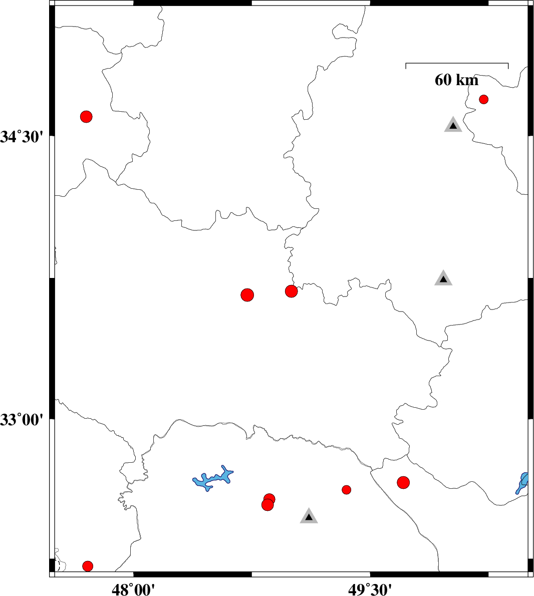 2014/06/08 | 01:14:42.8 | 05:44:42.8 | 33.66 | 48.72 | 18 | ML3.6 | Lorestan Province, 27 km South of Borujerd |