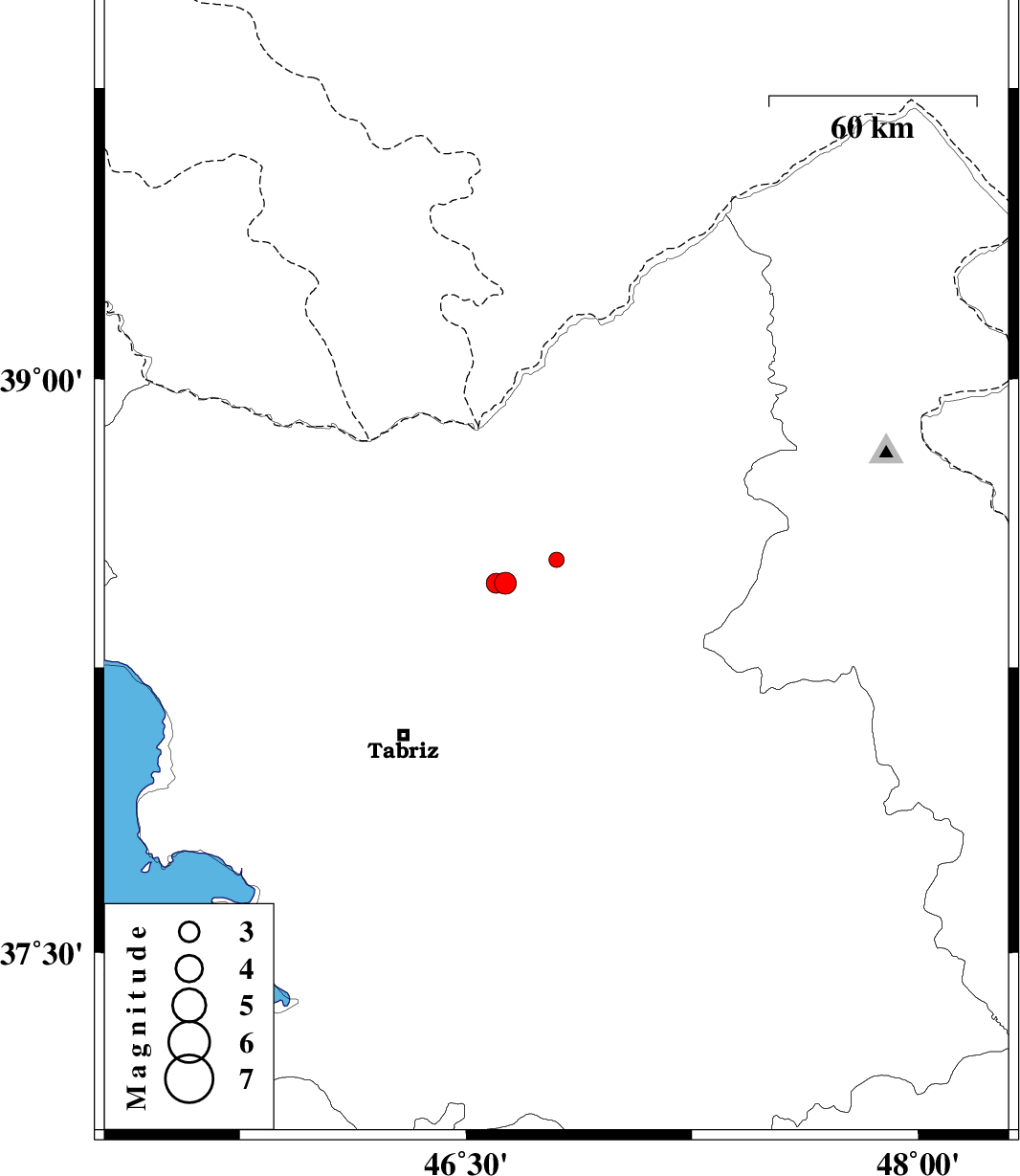 2014/05/24 | 00:05:07.7 | 04:35:07.7 | 38.47 | 46.6 | 15 | ML2.9 | Azarbaijan Sharghi Province, 42 km West of Ahar |