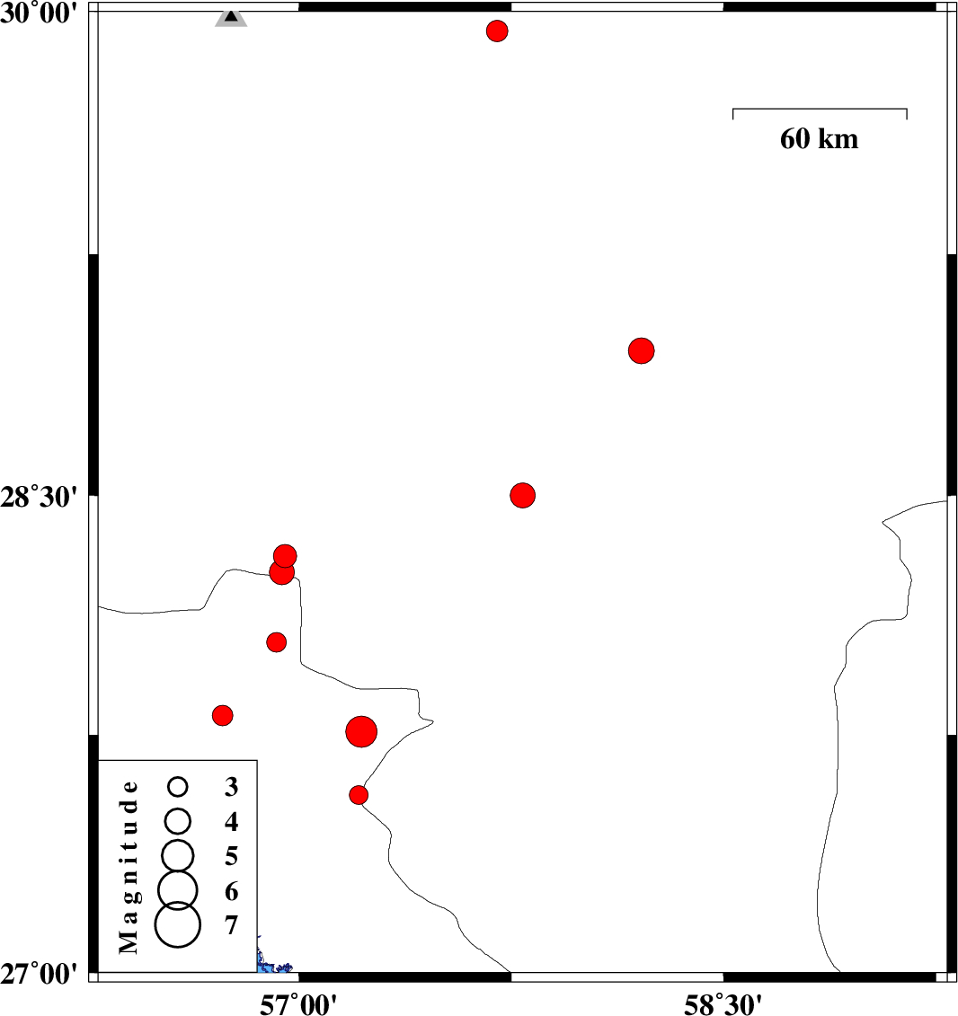 | 2014/06/03 | 09:50:34.3 | 14:20:34.3 | 29.94 | 57.7 | 14 | ML3.4 | Kerman Province, 71 km South-East of Kerman | ||