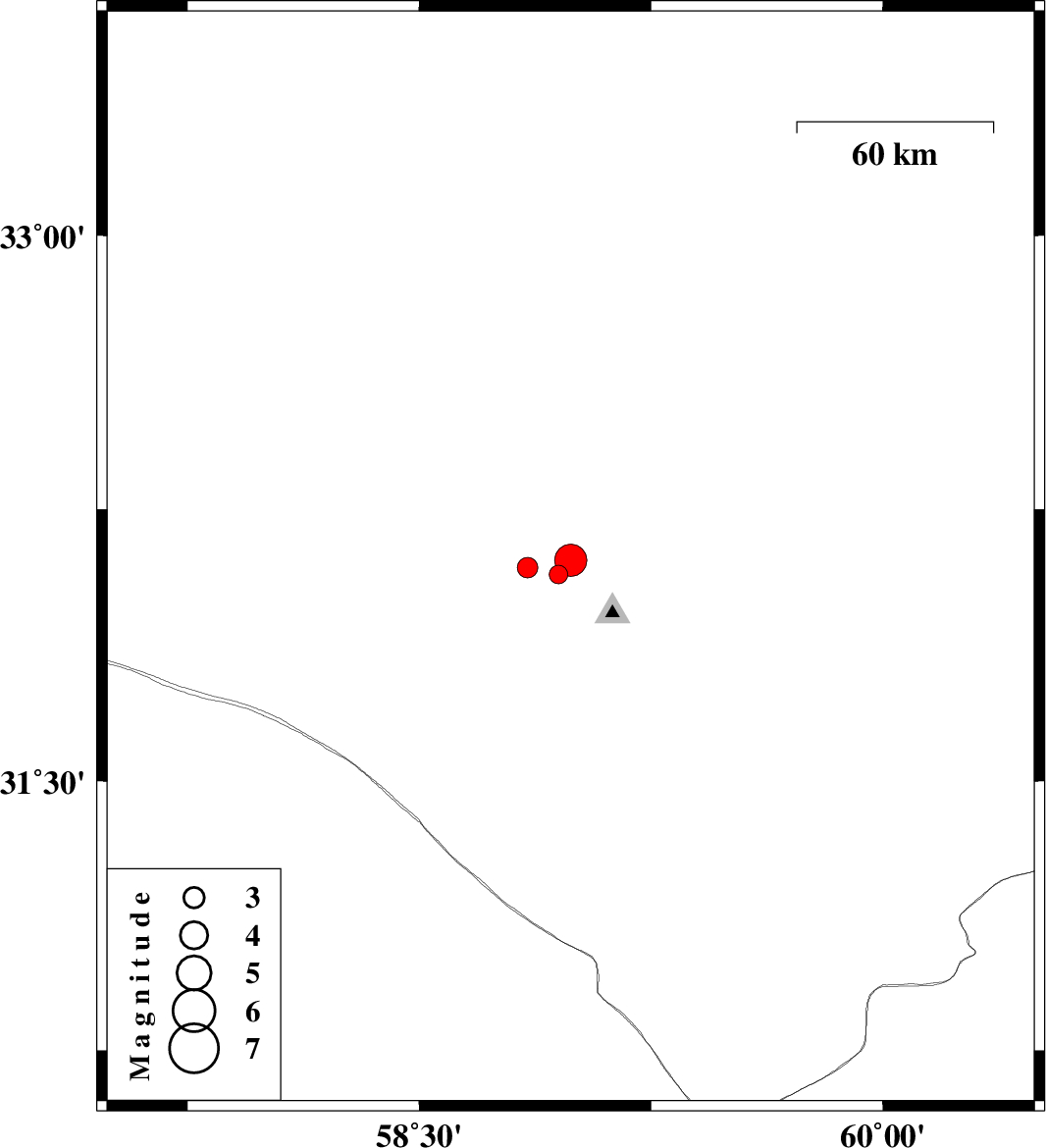 | 2014/06/28 | 19:31:37.6 | 00:01:37.6 | 32.07 | 58.95 | 14 | ML2.7 | Khorasan(south) Province, 96 km South-West of Birjand | ||