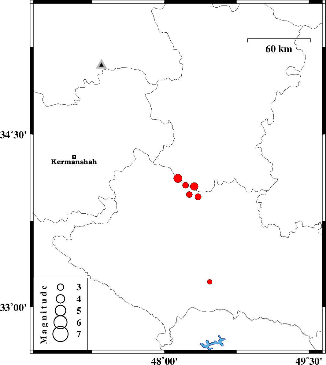 2014/06/29 | 01:25:46.7 | 05:55:46.7 | 34.06 | 48.22 | 14 | ML2.8 | Lorestan Province, 23 km East of Nurabad | ||