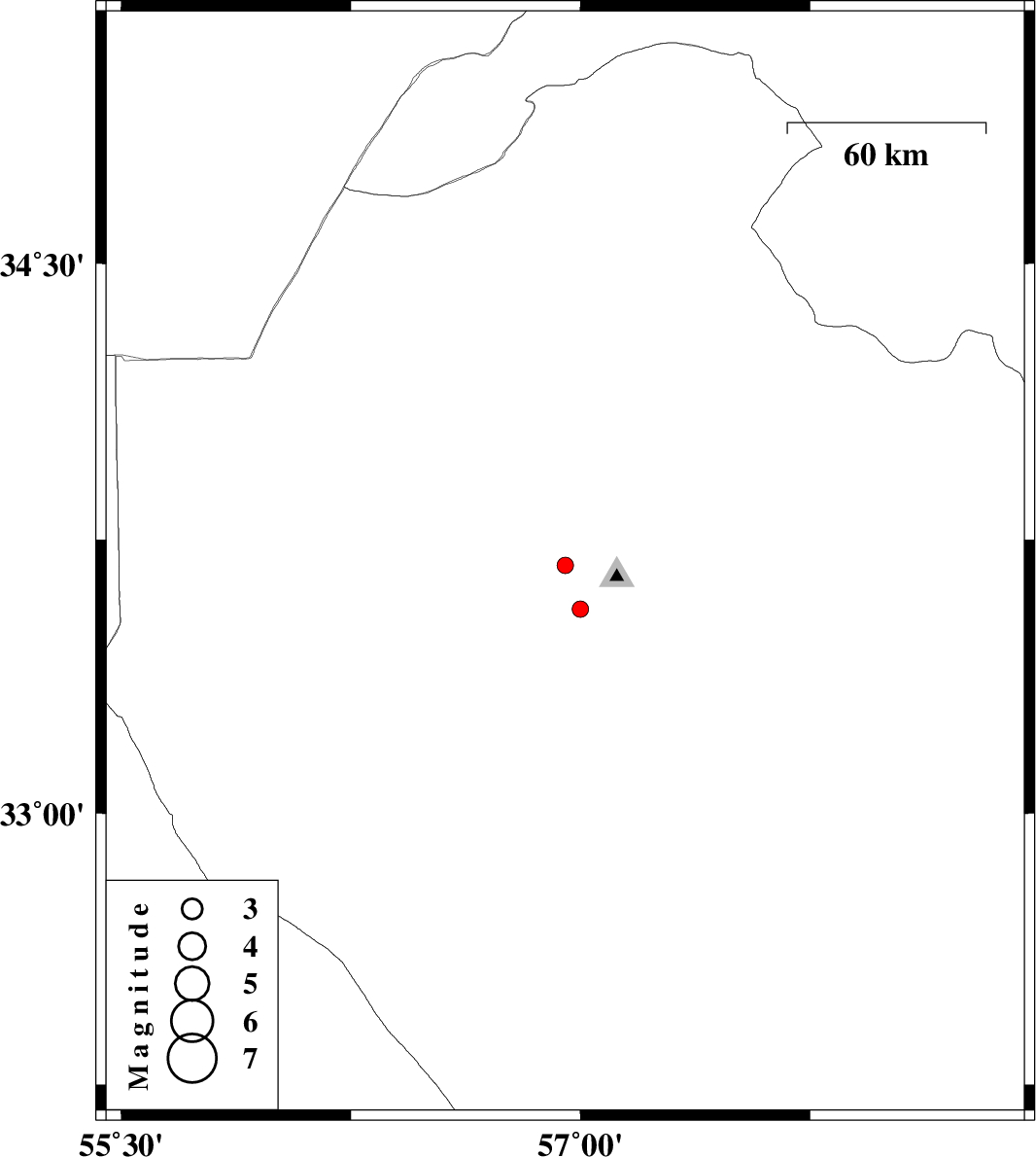 | 2014/06/29 | 19:47:57.1 | 00:17:57.1 | 33.56 | 57 | 14 | ML2.4 | Yazd Province, 8 km Tabas |