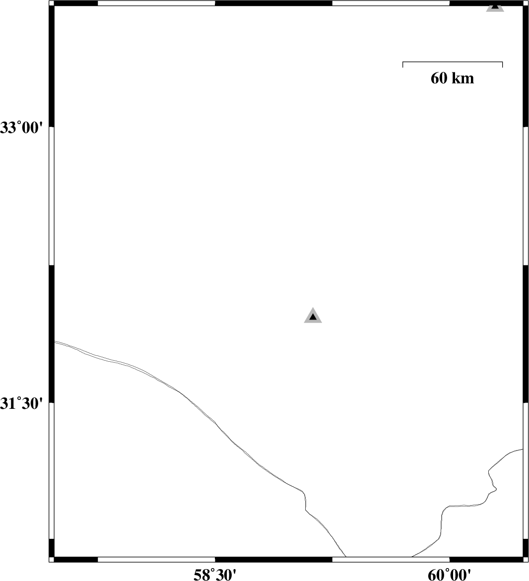 | 2014/06/16 | 01:34:52.9 | 06:04:52.9 | 31.71 | 60.14 | 18 | ML3.9 | Khorasan(south) Province, 22 km North-East of Nehbandan | ||