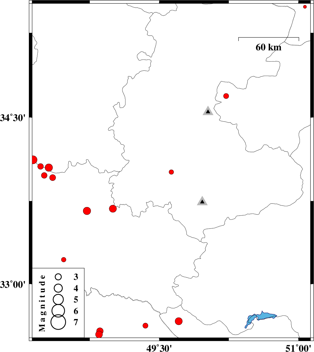 2014/06/29 | 01:25:46.7 | 05:55:46.7 | 34.06 | 48.22 | 14 | ML2.8 | Lorestan Province, 23 km East of Nurabad | ||
