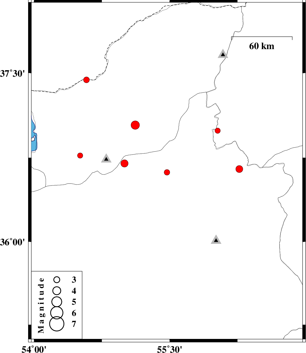 | 2014/06/06 | 12:54:29.6 | 17:24:29.6 | 36.7 | 55 | 17 | ML3.6 | Semnan Province, 31 km North of Shahrud |