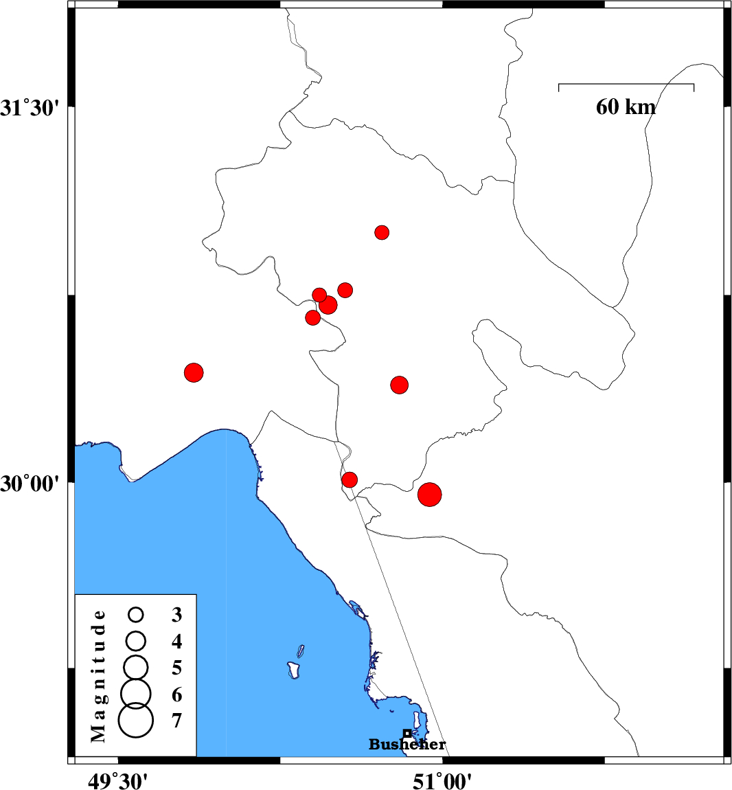 | 2014/06/20 | 22:54:20.6 | 03:24:20.6 | 29.95 | 50.94 | 6 | ML5 | Fars Province, 47 km South-East of Dogonbadan | ||