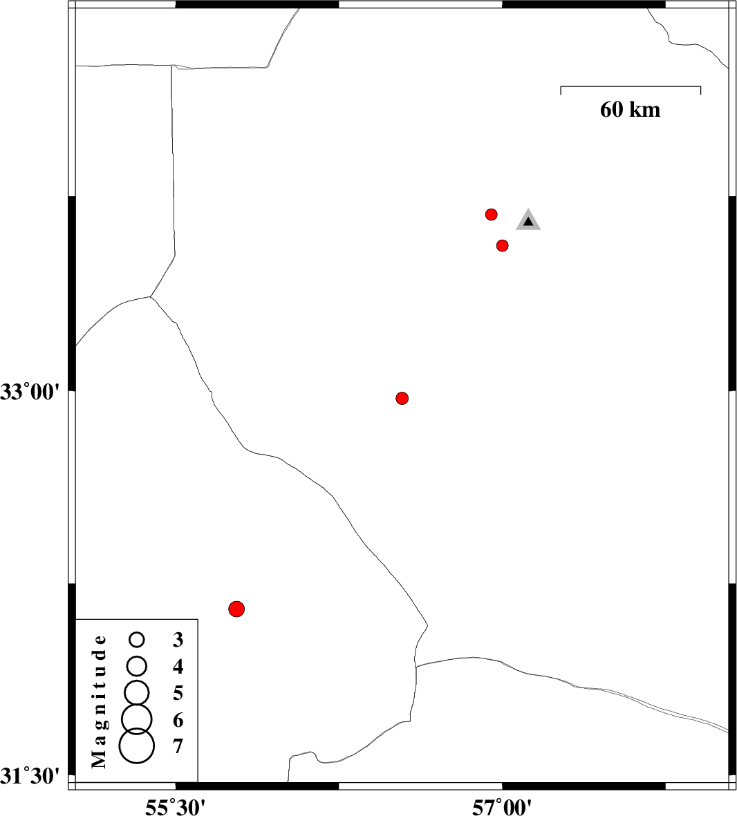 | 2014/07/05 | 22:14:08.2 | 02:44:08.2 | 32.15 | 55.78 | 17 | ML3.2 | Yazd Province, 71 km North-East of Bafq | ||