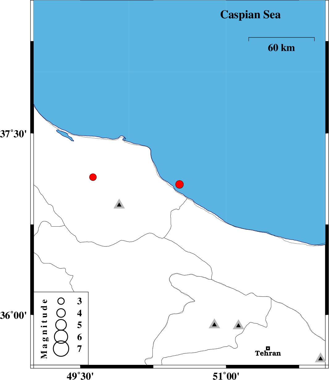 | 2014/07/01 | 15:42:46.3 | 20:12:46.3 | 37.14 | 49.63 | 14 | ML3.3 | Gilan Province, 16 km South of Rasht |