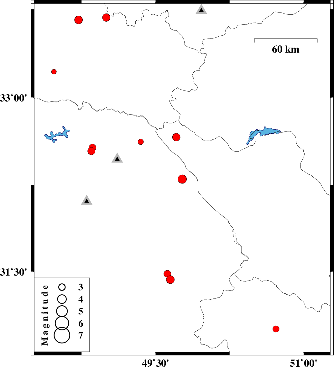 2014/07/05 | 23:41:43.2 | 04:11:43.2 | 32.3 | 49.77 | 14 | ML3.9 | Khoozestan Province, 37 km South-West of Chelgard | ||
