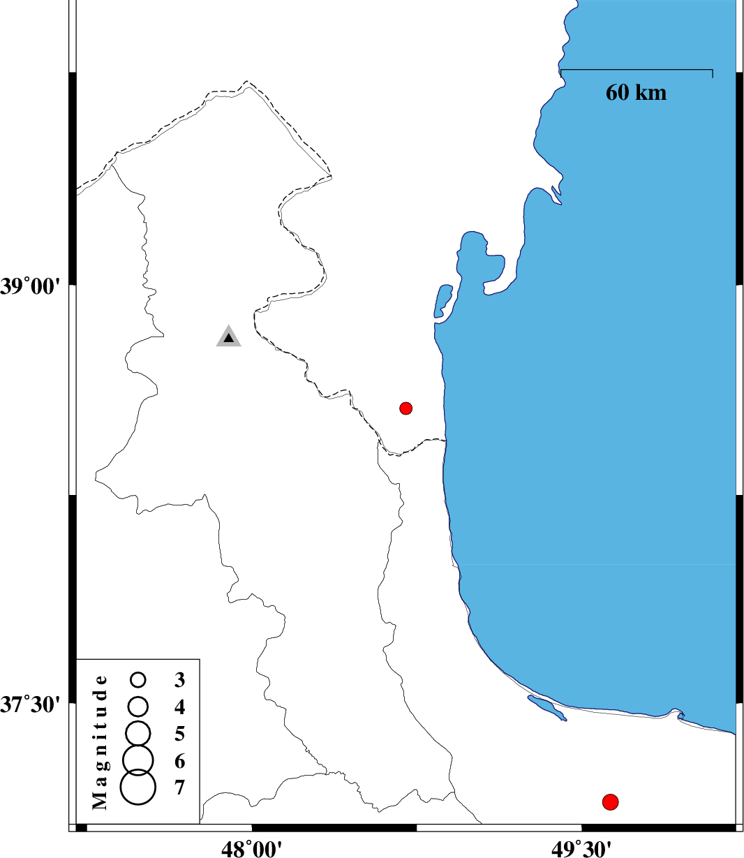 | 2014/07/01 | 15:42:46.3 | 20:12:46.3 | 37.14 | 49.63 | 14 | ML3.3 | Gilan Province, 16 km South of Rasht |