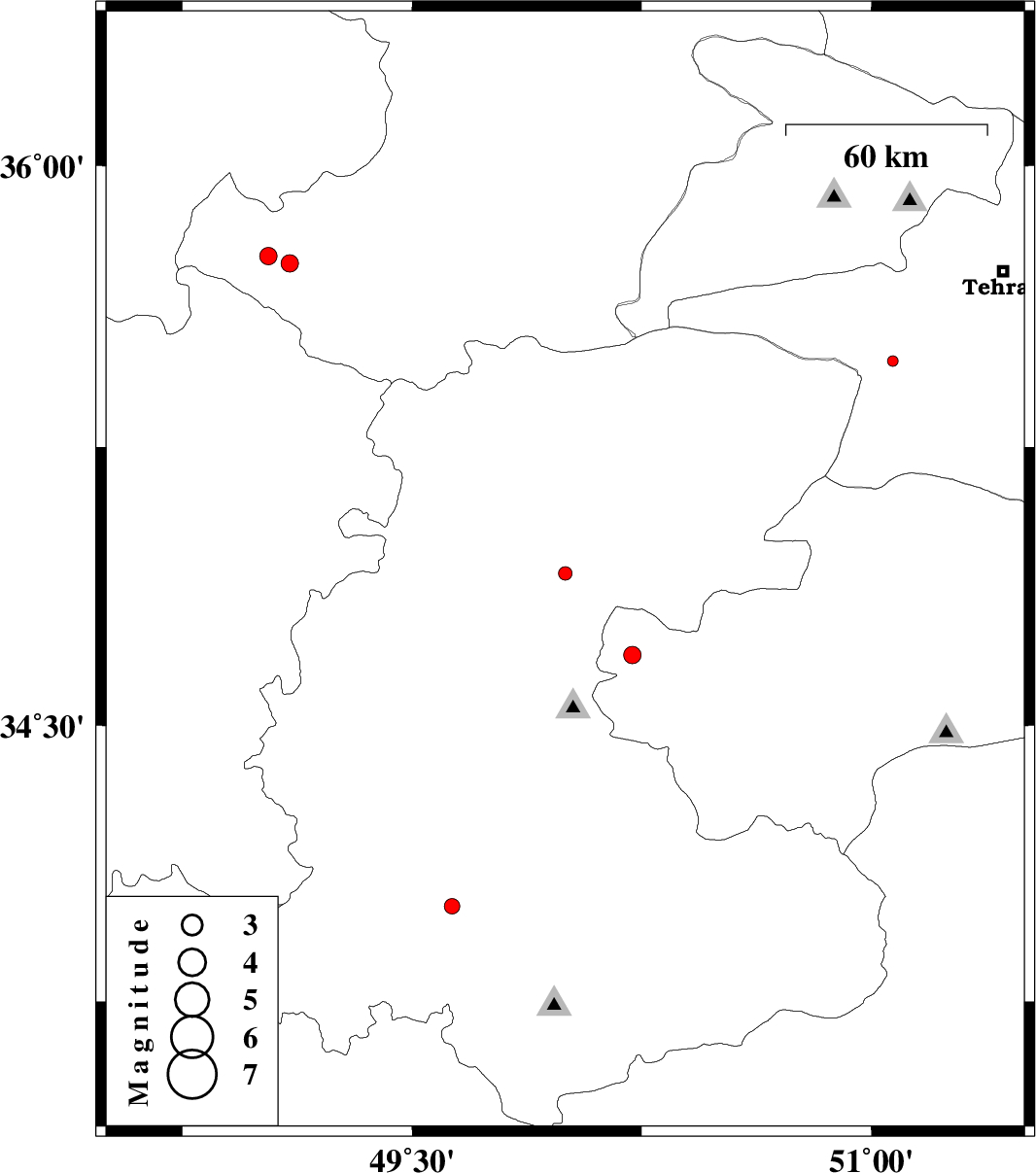 | 2014/07/08 | 02:08:07.8 | 06:38:07.8 | 34.91 | 50 | 18 | ML2 | Markazi Province, 24 km North of Tafresh | ||
