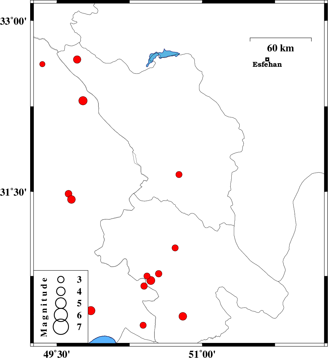 | 2014/06/12 | 19:55:42.2 | 00:25:42.2 | 32.66 | 49.71 | 18 | ML3.5 | Chaharmahal Bakhtiari Province, 45 km North-West of Chelgard |