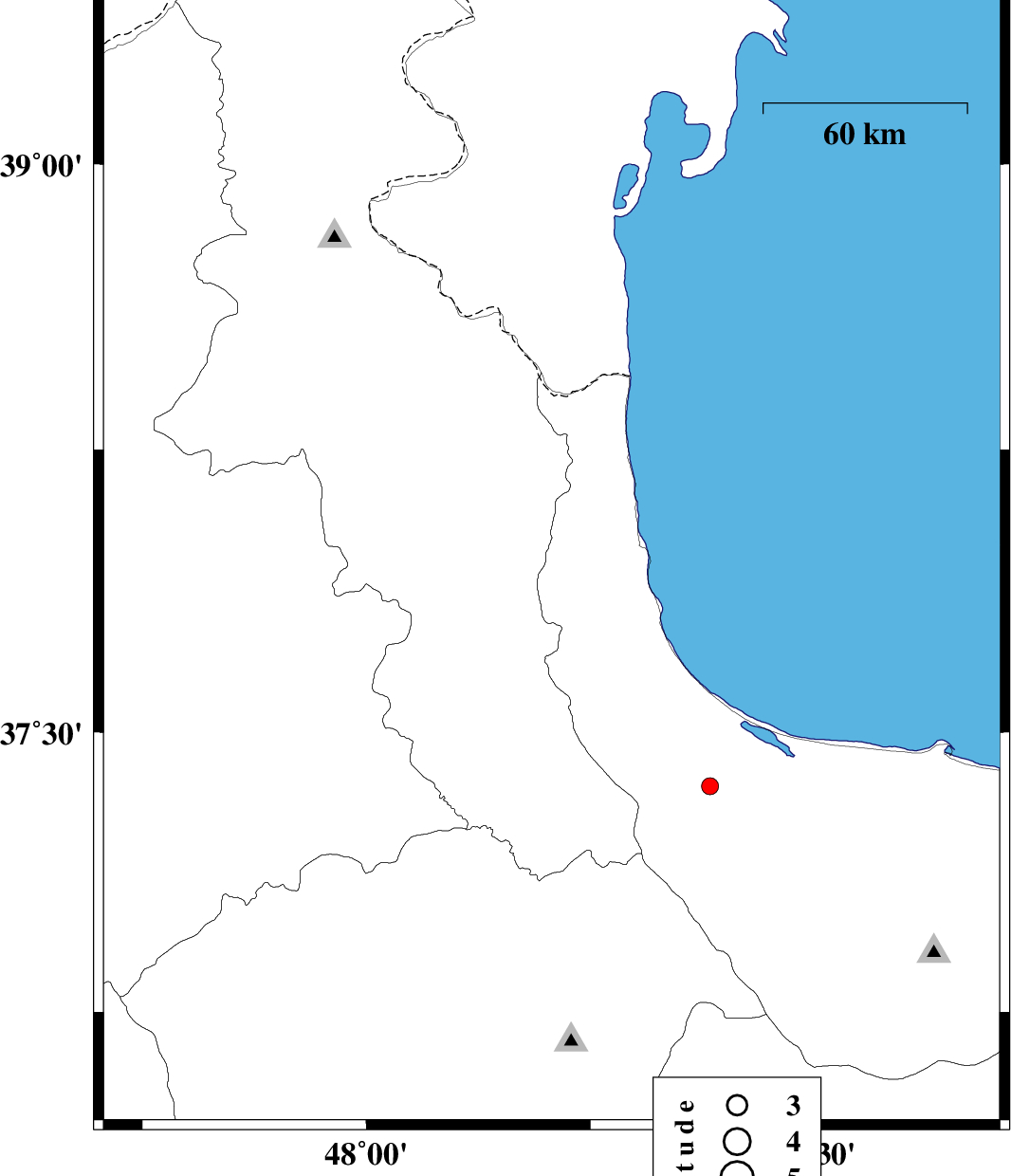 | 2014/07/01 | 15:42:46.3 | 20:12:46.3 | 37.14 | 49.63 | 14 | ML3.3 | Gilan Province, 16 km South of Rasht | ||