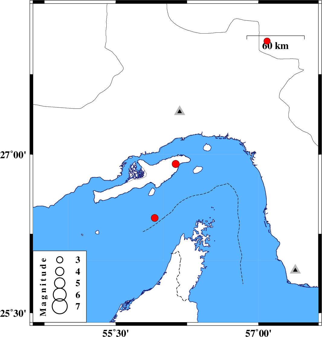 | 2014/07/16 | 03:10:35.6 | 07:40:35.6 | 26.91 | 56.13 | 15 | ML3.5 | Persian Gulf, 14 km West of Qeshm | ||