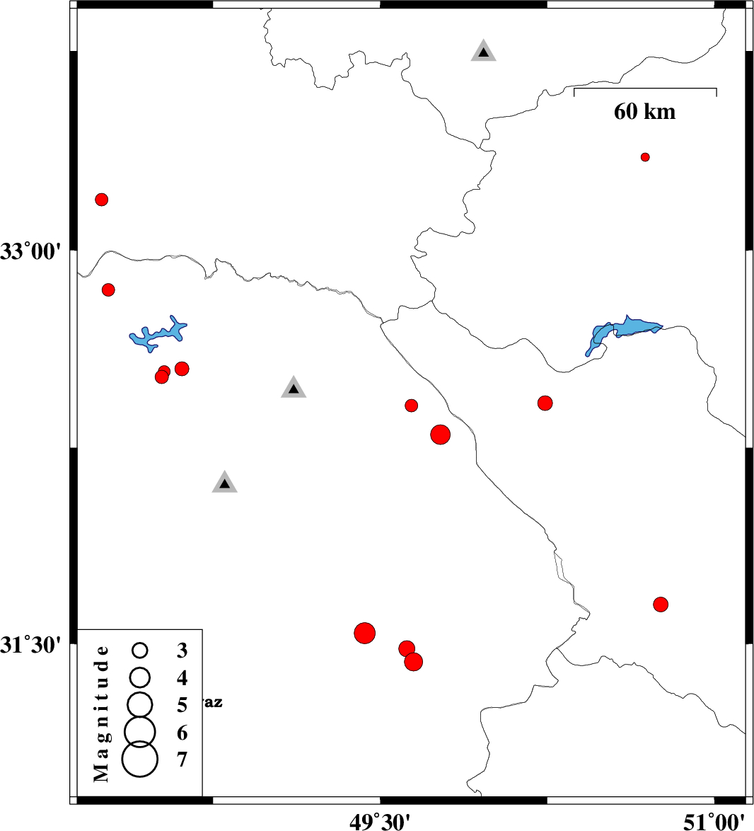 2014/07/05 | 23:41:43.2 | 04:11:43.2 | 32.3 | 49.77 | 14 | ML3.9 | Khoozestan Province, 37 km South-West of Chelgard | ||