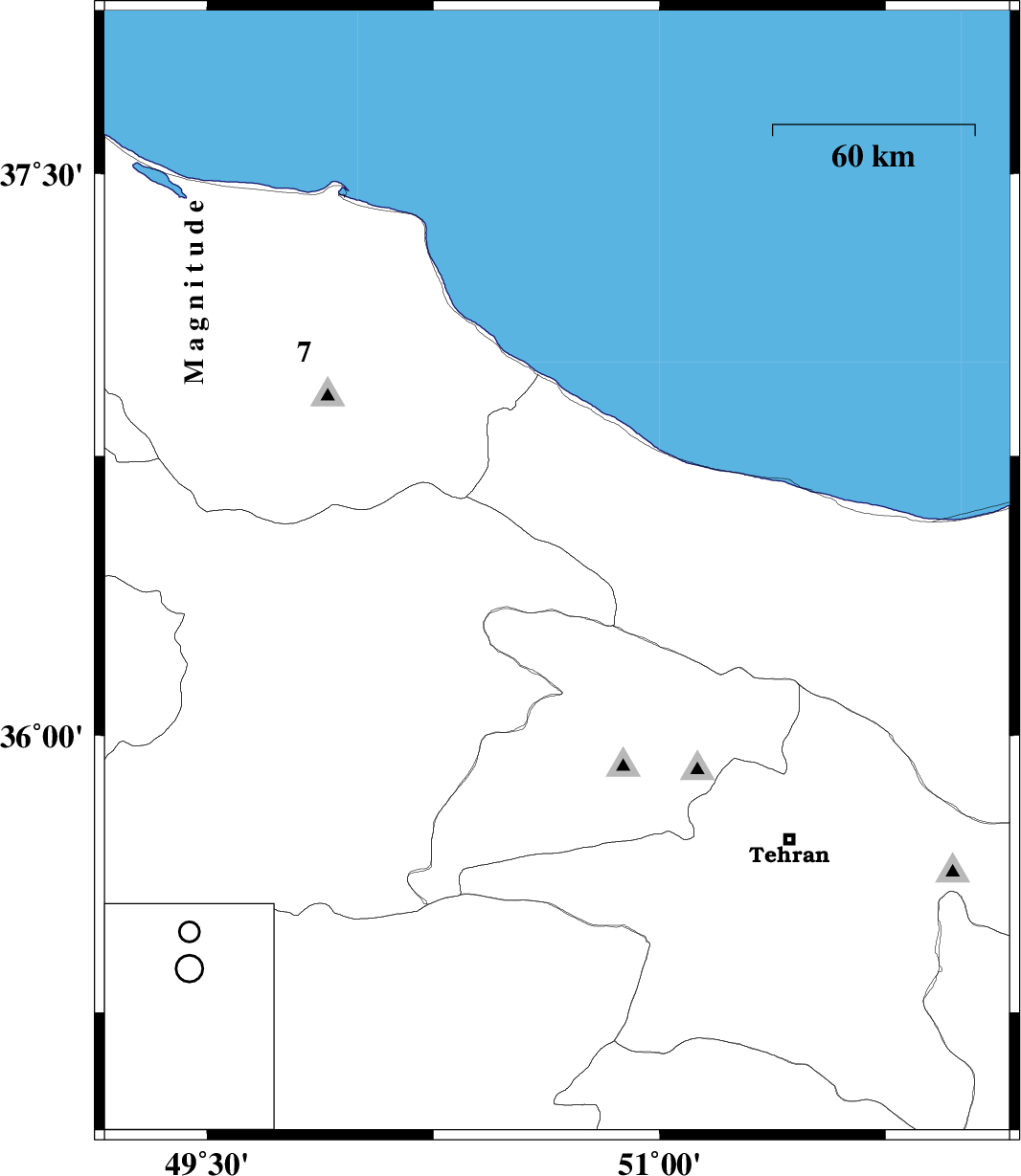 2014/08/06 | 13:37:06.5 | 18:07:06.5 | 36.43 | 50.66 | 15 | ML2.2 | Ghazvin Province, 52 km North of Hashtgerd |