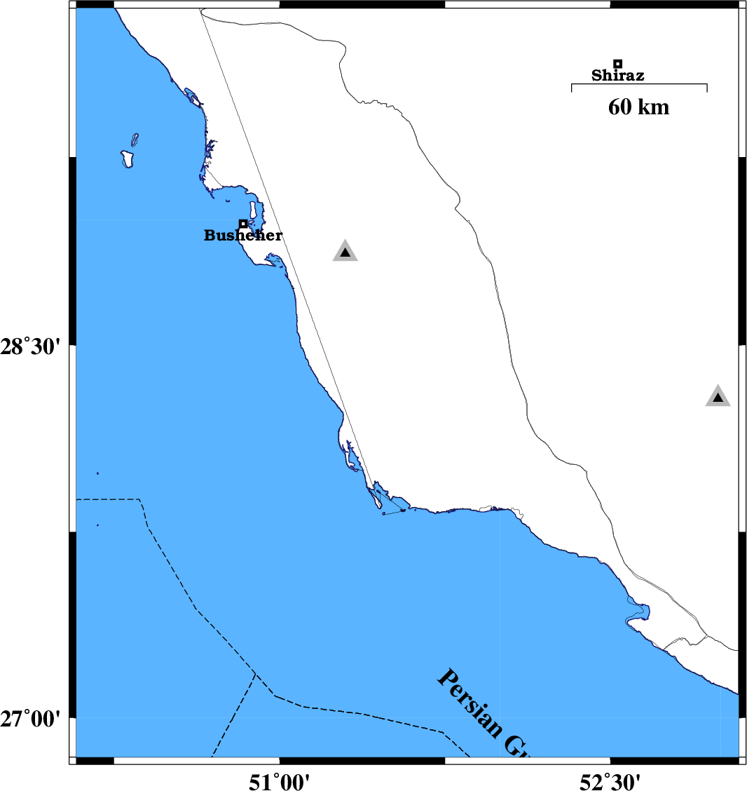 | 2014/07/16 | 09:40:15.9 | 14:10:15.9 | 29.42 | 51.35 | 15 | ML4.1 | Bushehr Province, 23 km North-East of Borazjan |