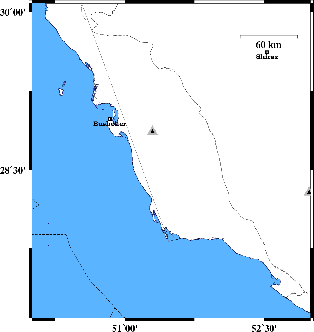 | 2014/08/15 | 14:48:05.1 | 19:18:05.1 | 28.34 | 51.58 | 14 | ML4.5 | Bushehr Province, 40 km South-East of Khormog | ||