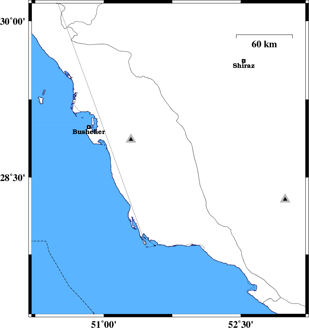 | 2014/08/15 | 14:48:05.1 | 19:18:05.1 | 28.34 | 51.58 | 14 | ML4.5 | Bushehr Province, 40 km South-East of Khormog | ||