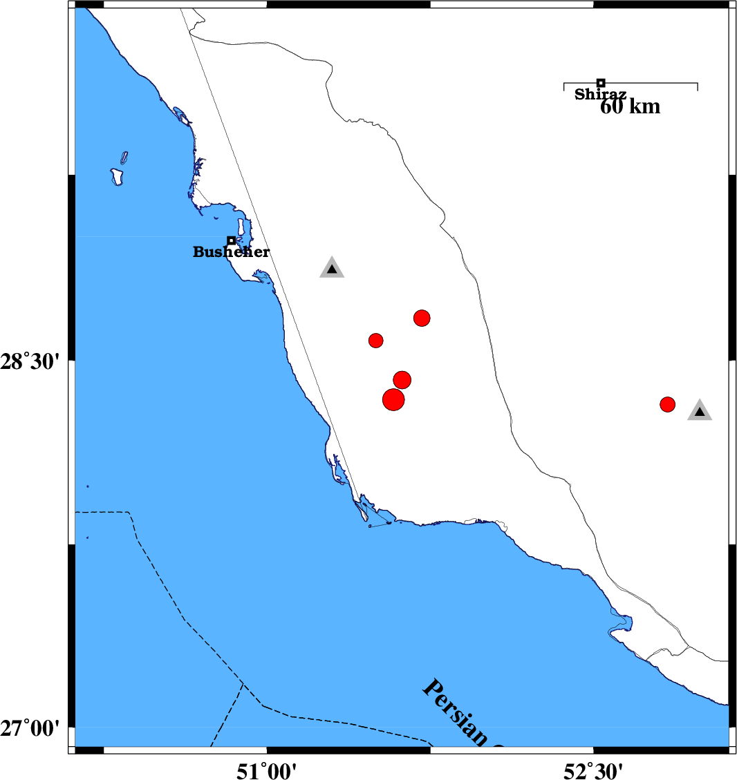 2014/08/05 23:12:45.6 03:42:45.6 28.3252.8414 ML3.1 Fars Province, 25 km South-West of Qir va Karzin