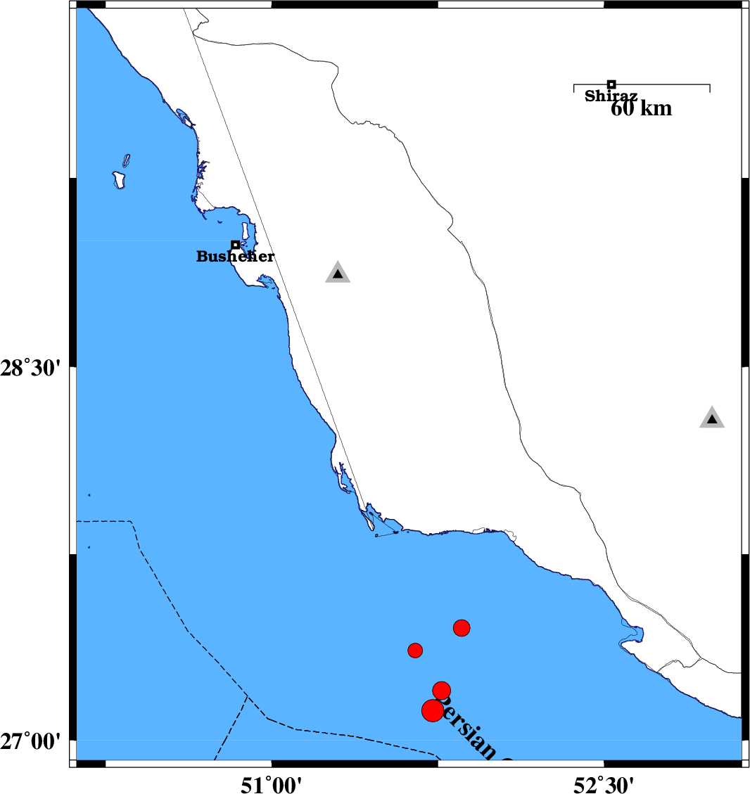 2014/08/15 14:48:05.1 19:18:05.1 28.3451.5814 ML4.5 Bushehr Province, 40 km South-East of Khormog
