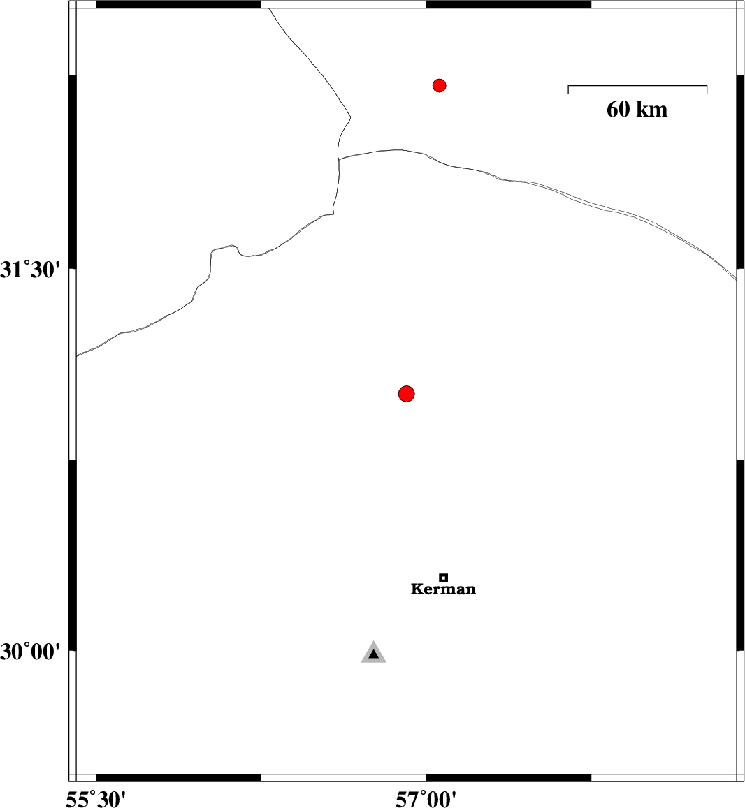 | 2014/08/17 | 00:07:44.7 | 04:37:44.7 | 31.01 | 56.91 | 18 | ML3.2 | Kerman Province, 30 km South-East of Ravar | ||