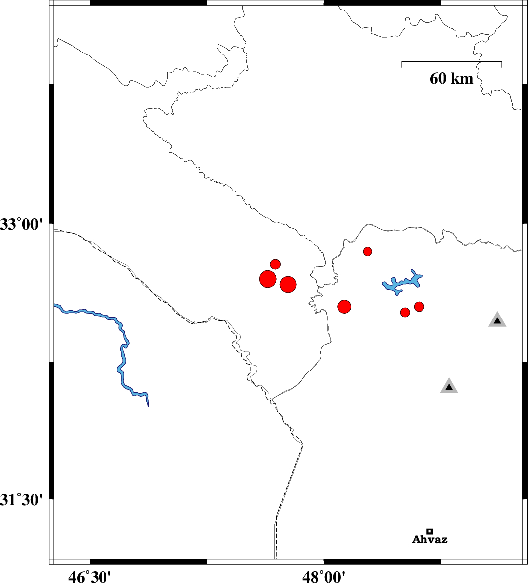 2014/08/17 15:35:13.9 20:05:13.9 32.7847.6918 ML3 Ilam Province, 27 km South-East of Abdanan